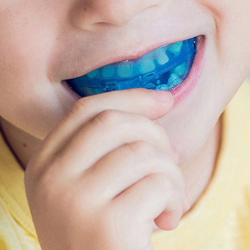 装置はマウスピース型でやわらかく、お口の中に入れても痛みがほとんどありません。また、家にいる時や寝ている時にだけ装着すれば良いので、子供が治療に取り組みやすいというメリットがあります。